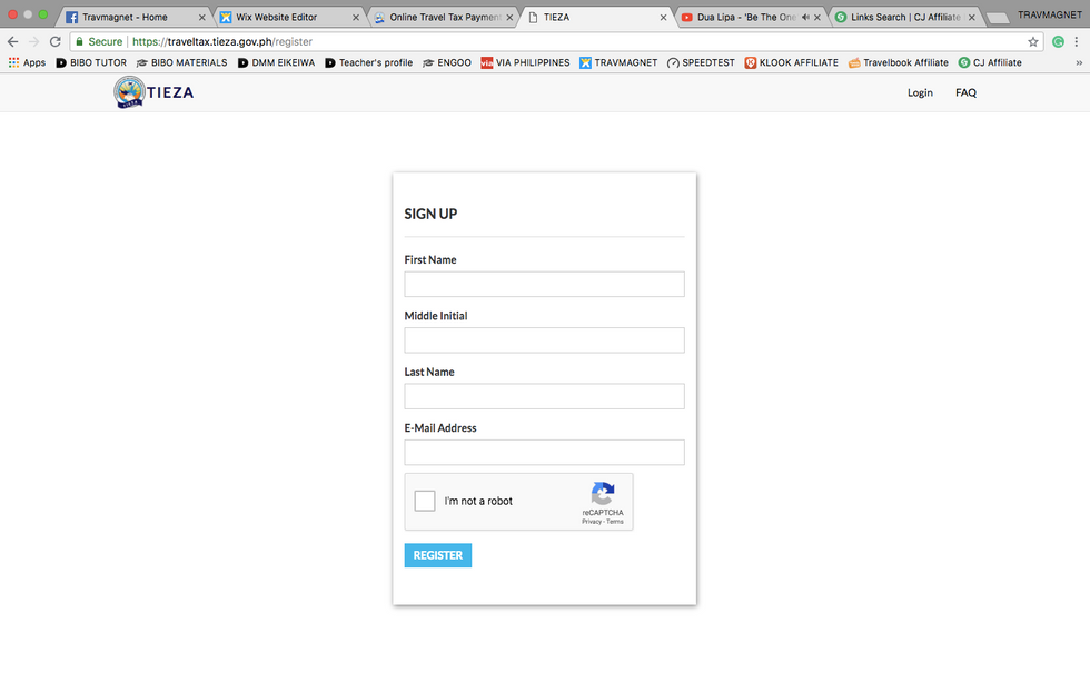 Go to https://traveltax.tieza.gov.ph. Create your profile and enter all the required information. You will receive a confirmation email that your registration was successful.